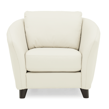 The Alula Chair in leather. Designed with a flowing and organic feel, this chair boasts flared, subtly rounded arms. Perfect for creating an elegant and inviting atmosphere.